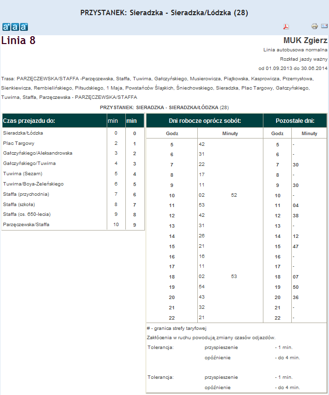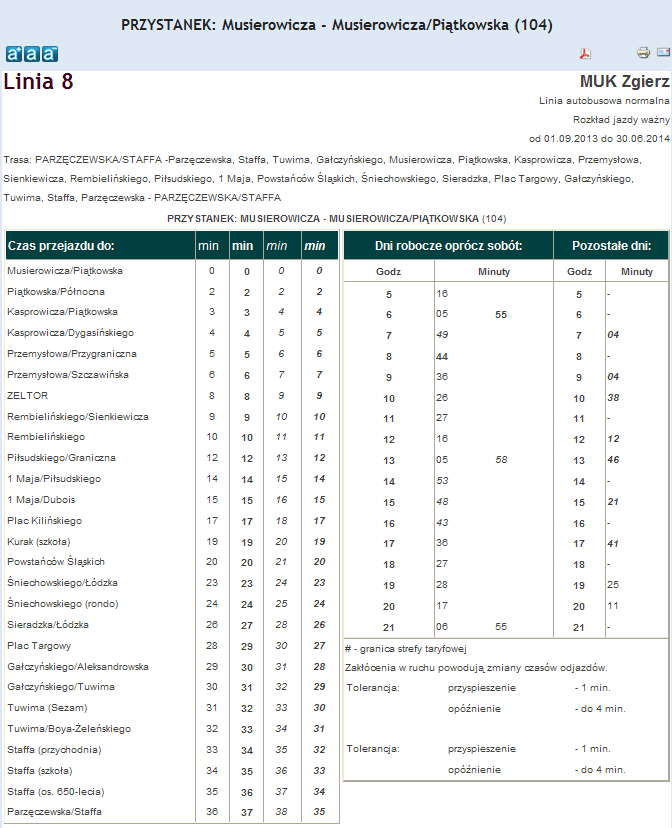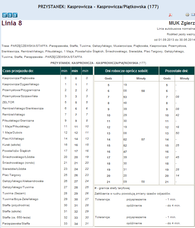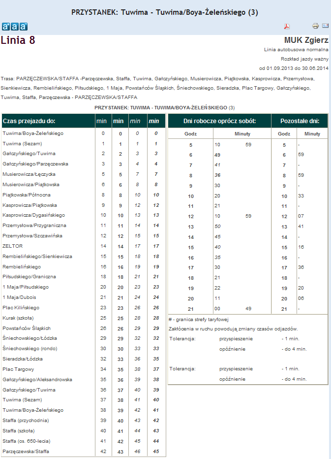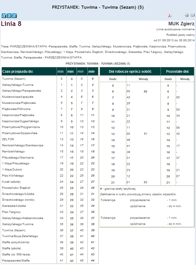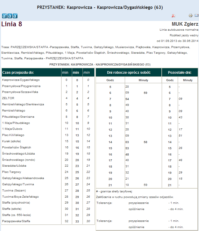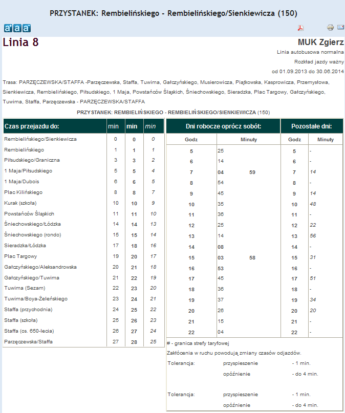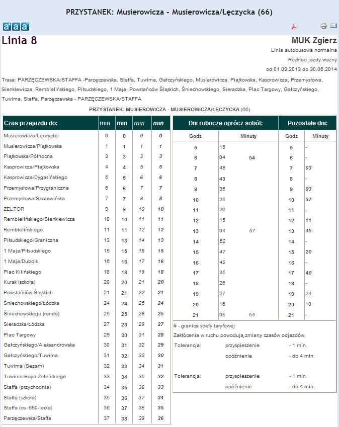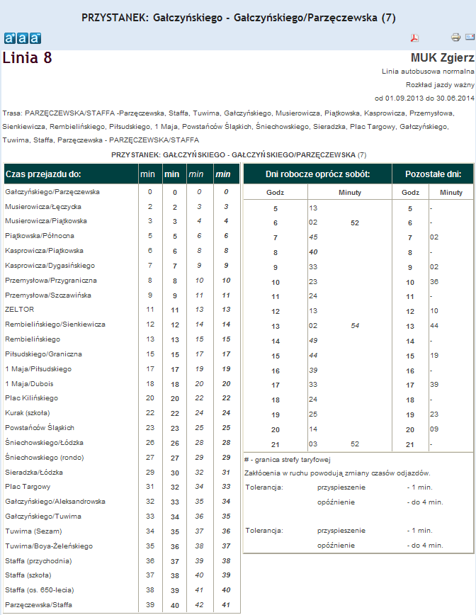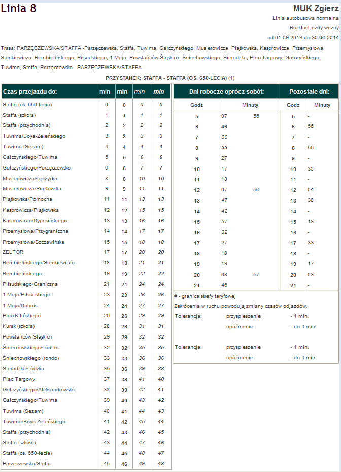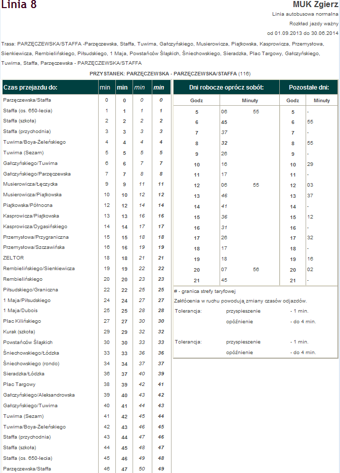Rozkład jazdy autobusu nr. 8 w Zgierzu . Komunikacja Zgieru