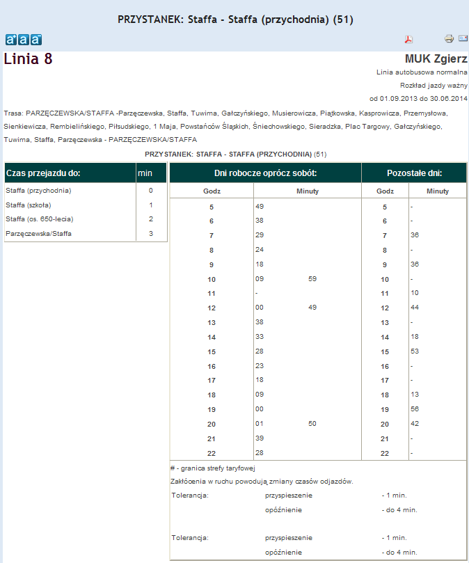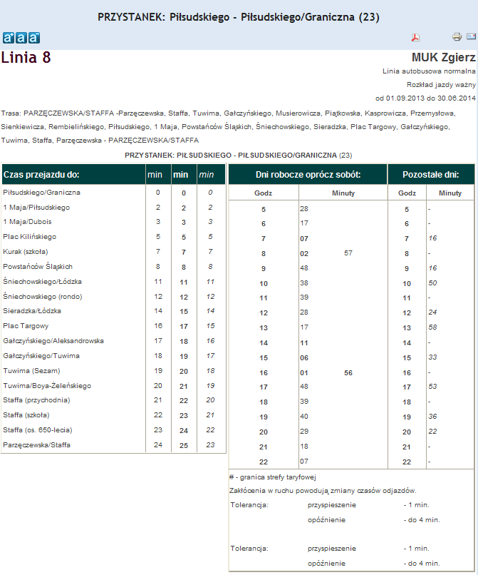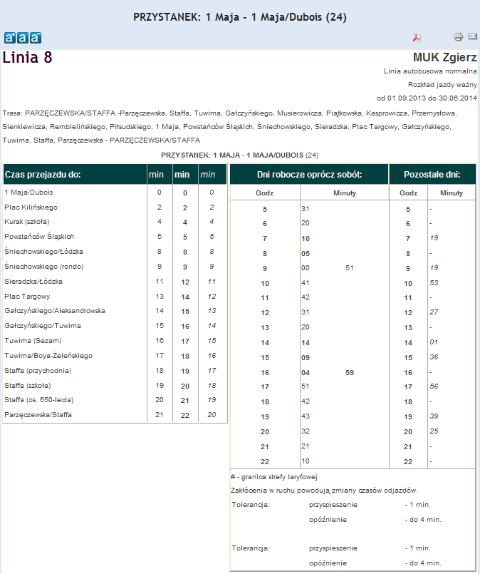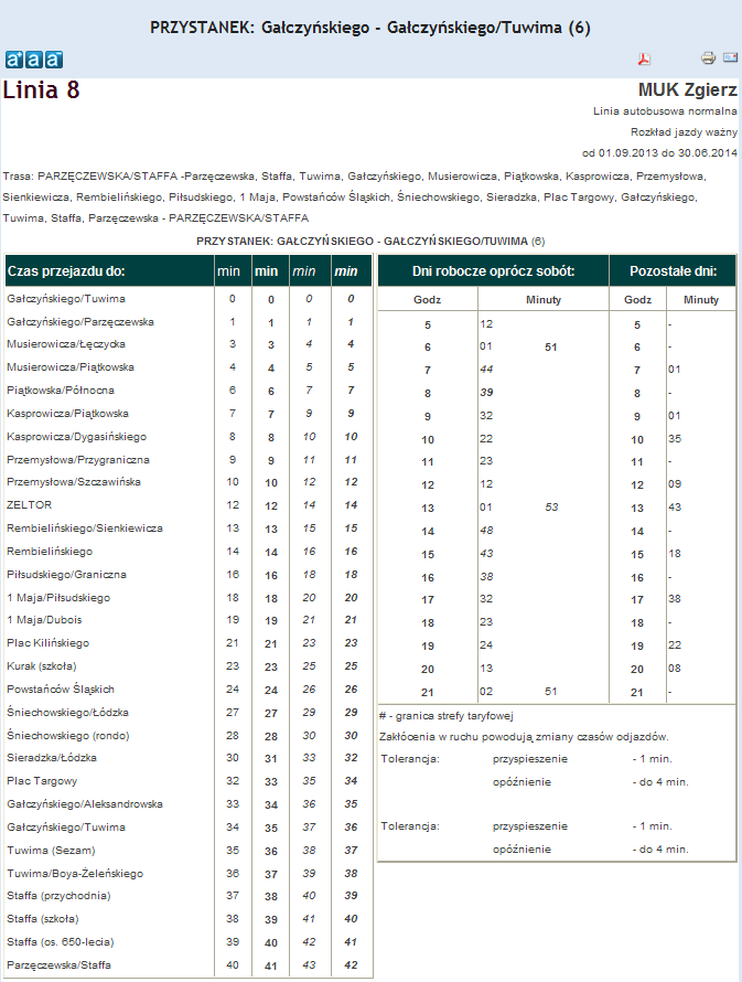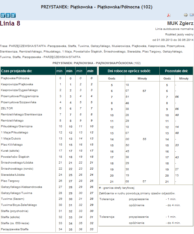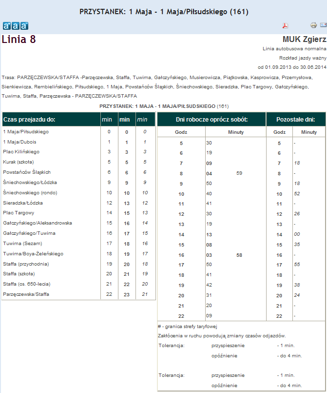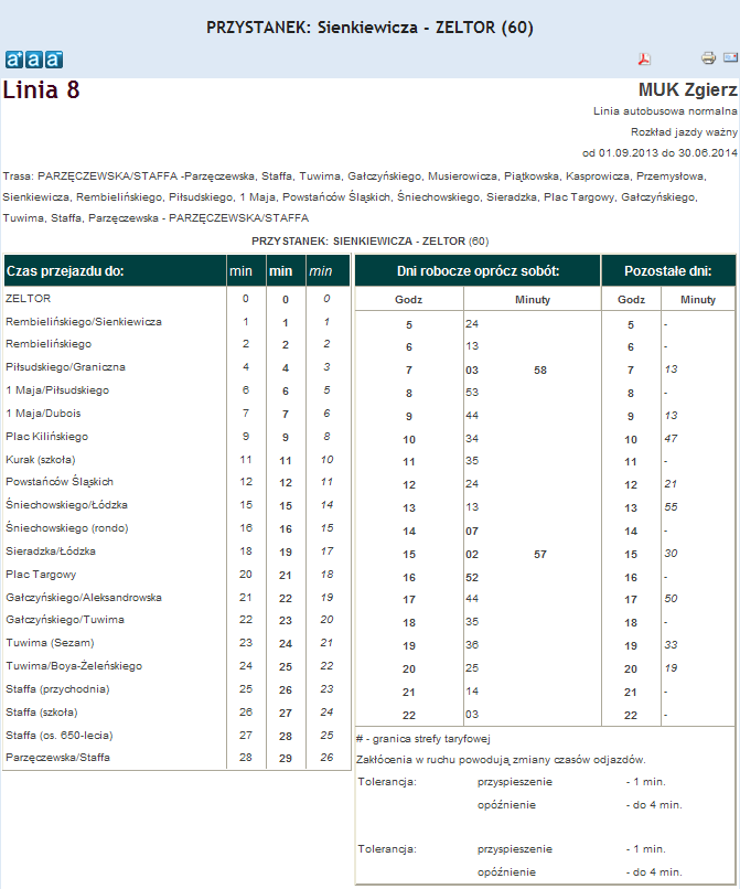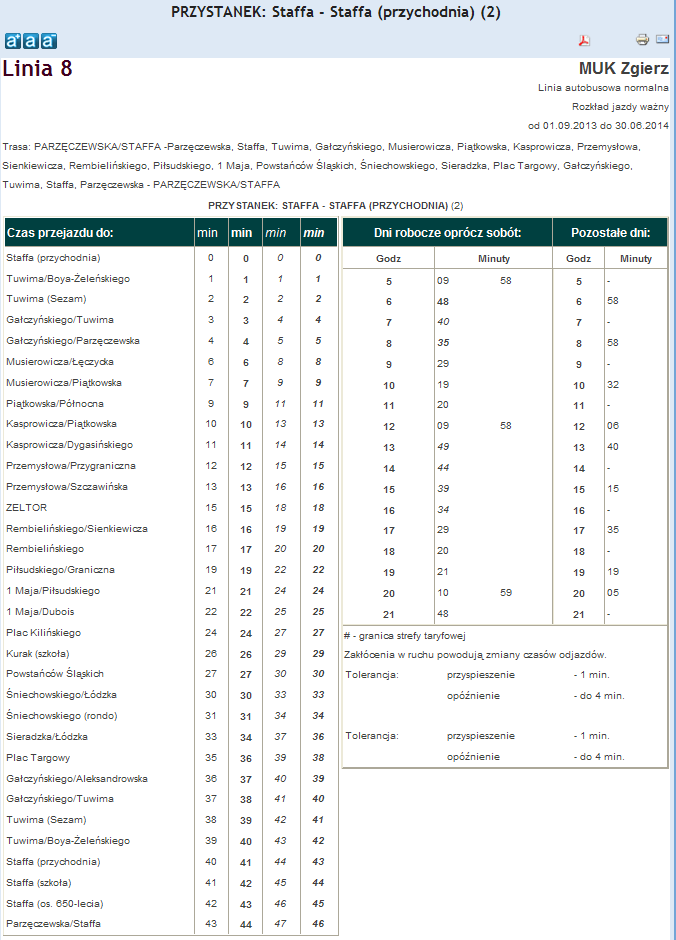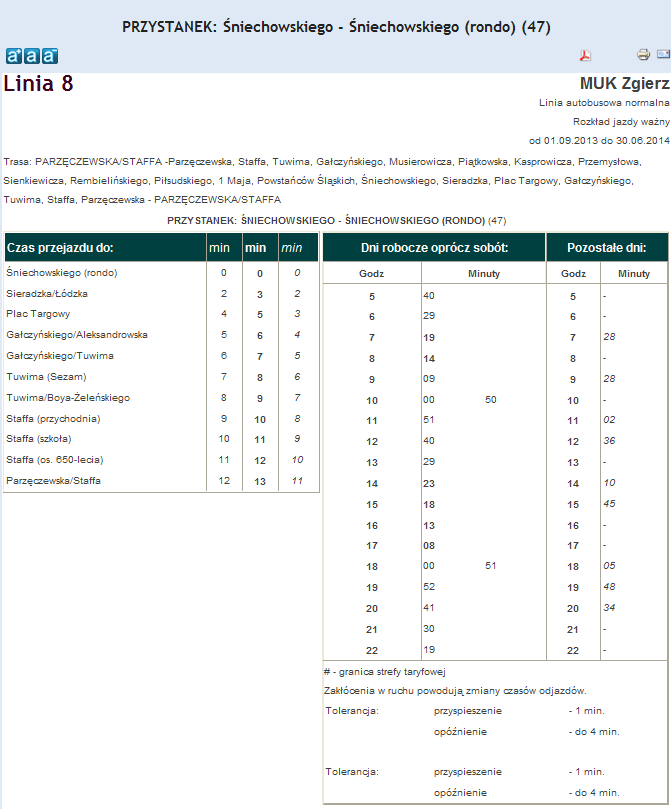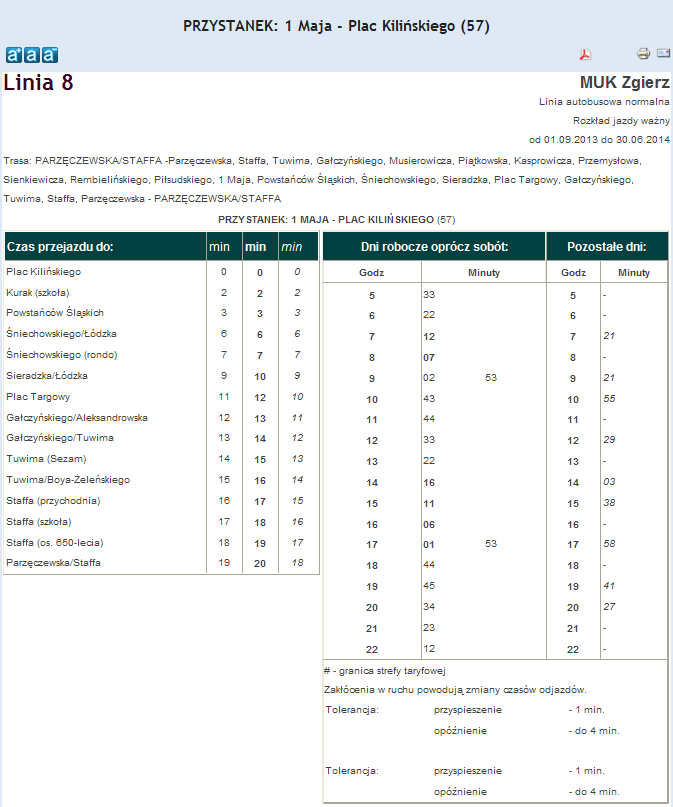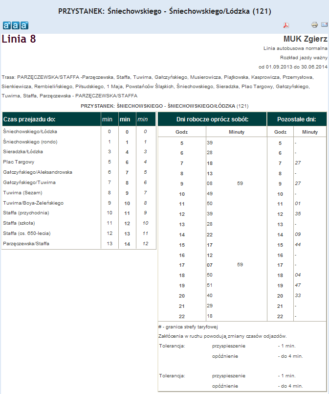 Rozkład jazdy autobusu nr. 8 w Zgierzu . Komunikacja Zgieru