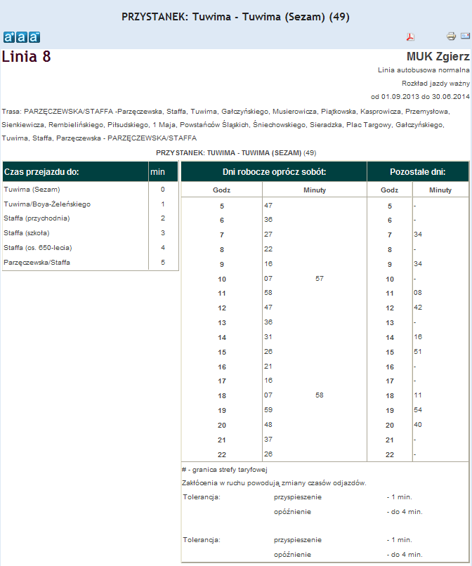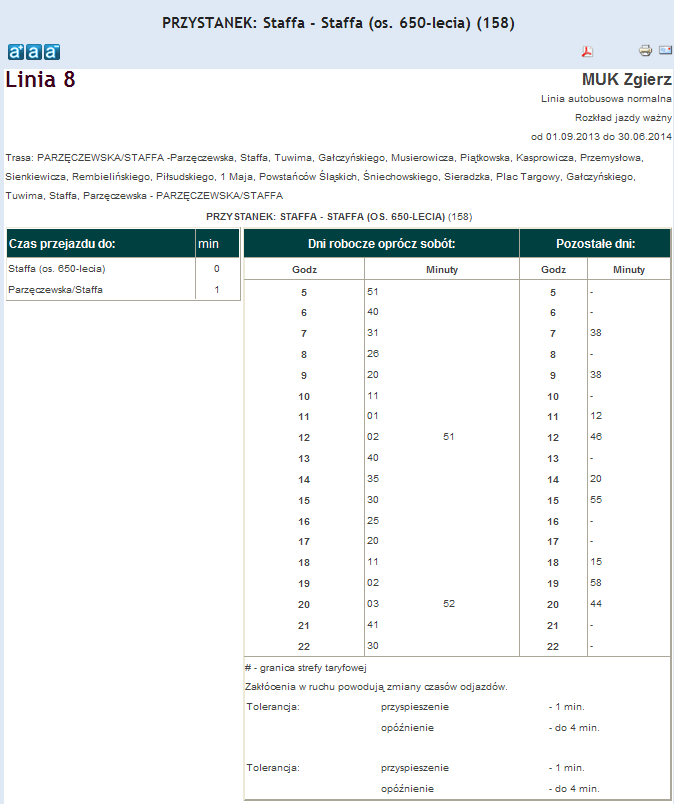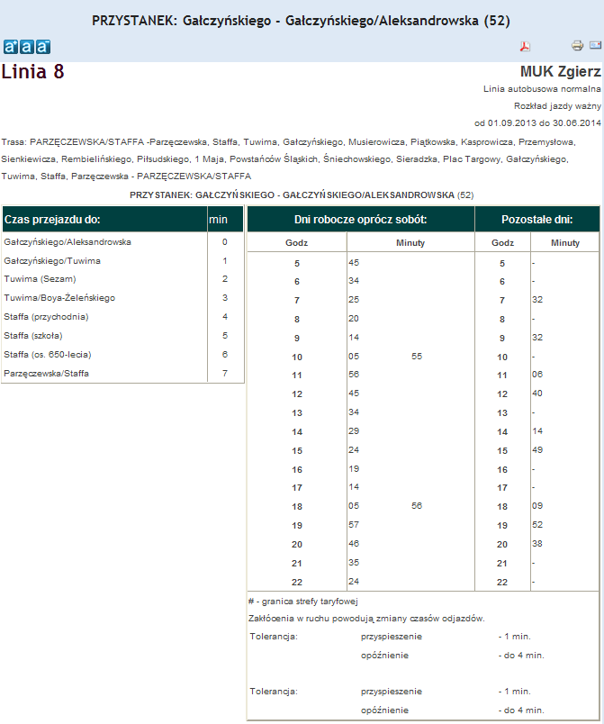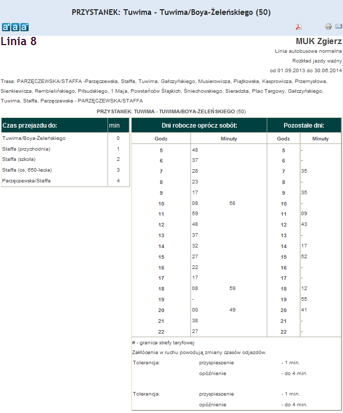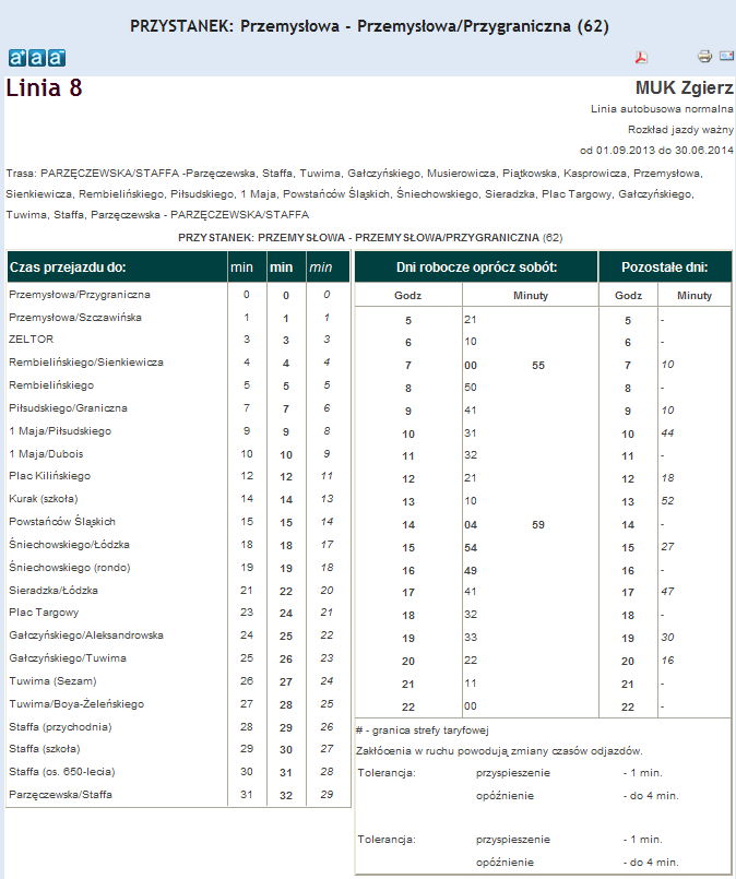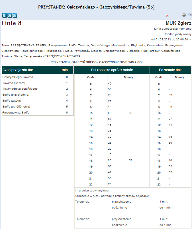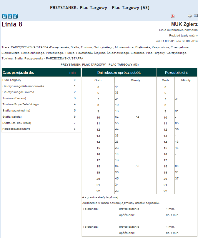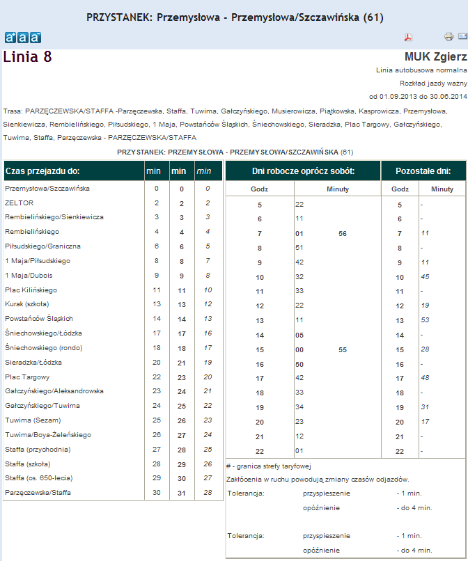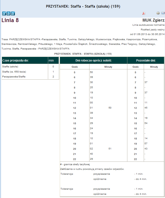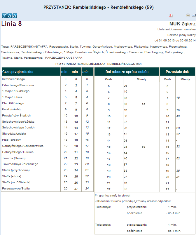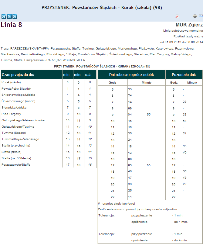Rozkład jazdy autobusu nr. 8 w Zgierzu . Komunikacja Zgieru